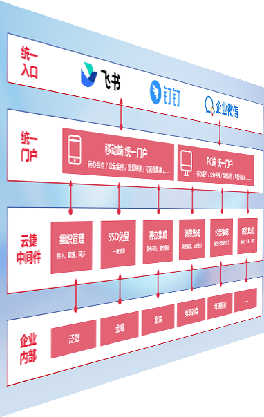 对协作平台提供支持服务,,,,支持企业应用与协作平台对接,,,,包含组织同步、、、、消息集成、、待办集成等。。。。支持目前主流的协作平台:钉钉、、、企微和飞书。。。。